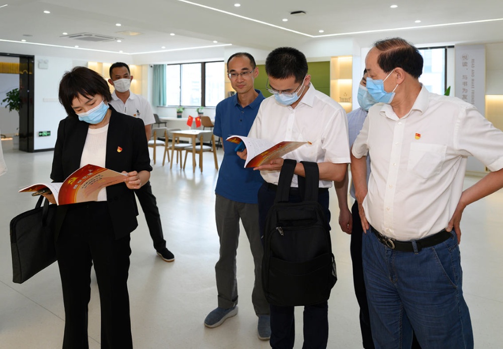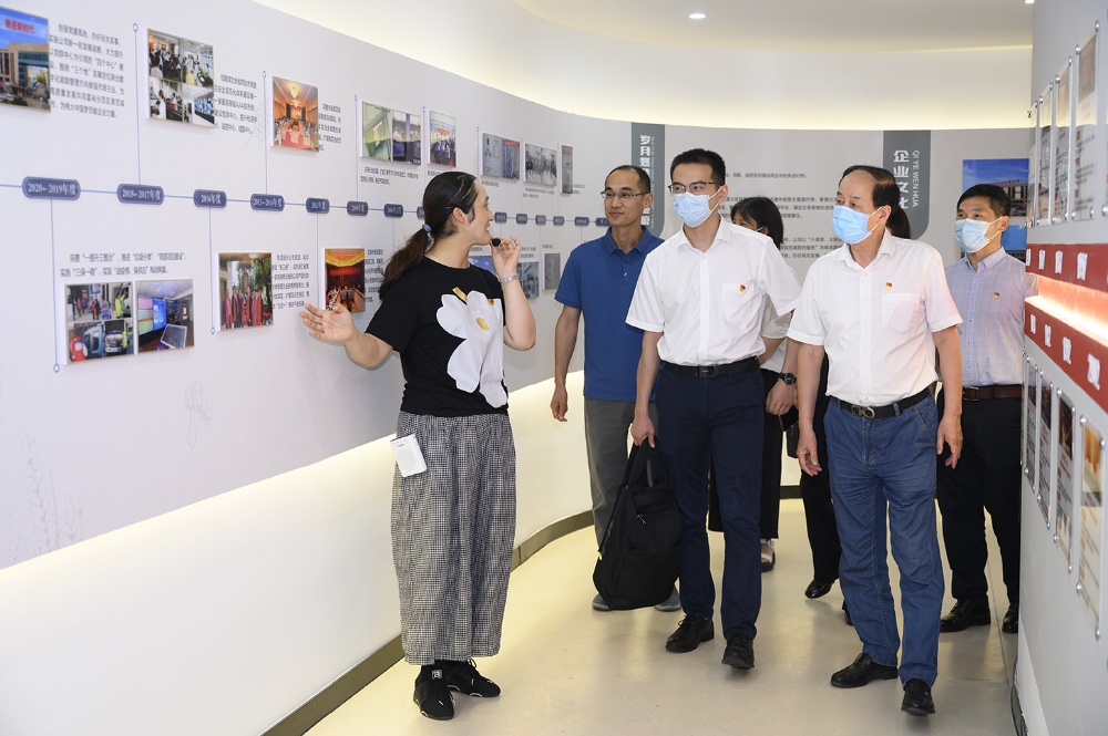指導檢查組領導一行參觀公司新建成的黨群服務中心、食品安全檢驗檢測中心,不時駐足并詢問公司黨建歷史和企業發展歷程等。