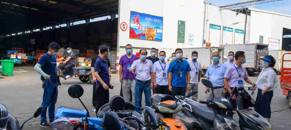 圖為:公司黨總支書記、總經理屠春甫,帶領班子檢查市場防暑降溫情況。