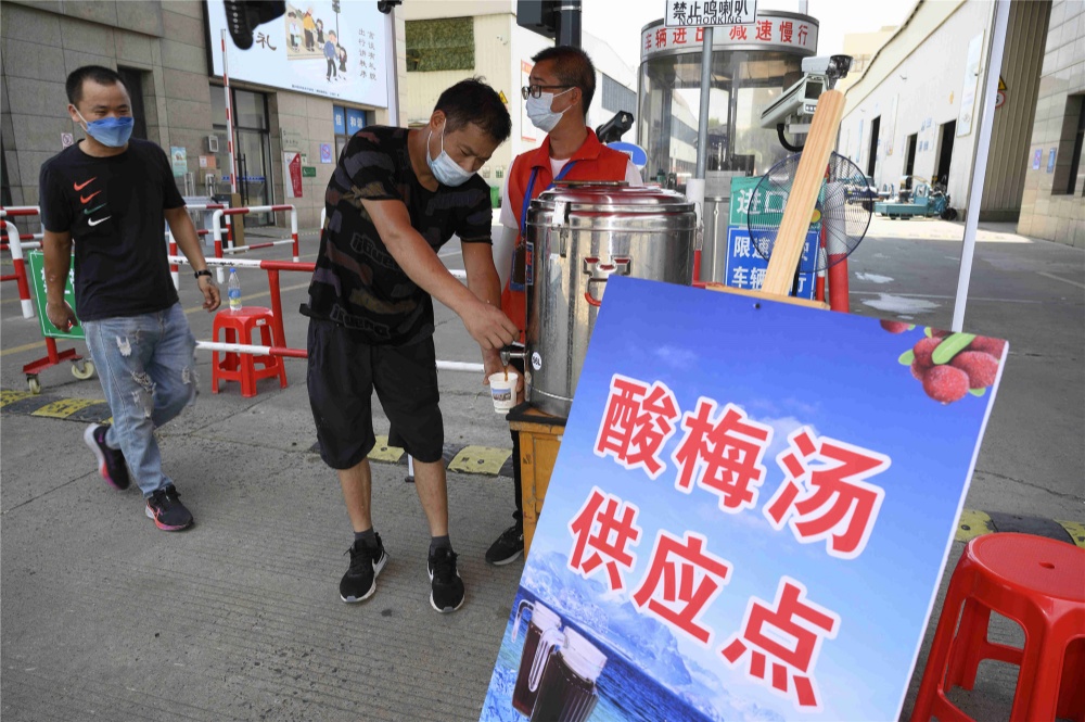 同時,公司在按規定發放給員工夏季高溫津貼之外還特別對市場崗位員工額外再發放高溫慰問費,并采購夏季勞保用品發放給全員。此外,市場落實夏季每天充足供應鹽汽水補充人體鹽份,并在市場主入口設置酸梅湯飲料定時供入場經營客商取用,在市場添置防署人丹等臨時用品……。通過一系列措施努力保障全員身體健康。