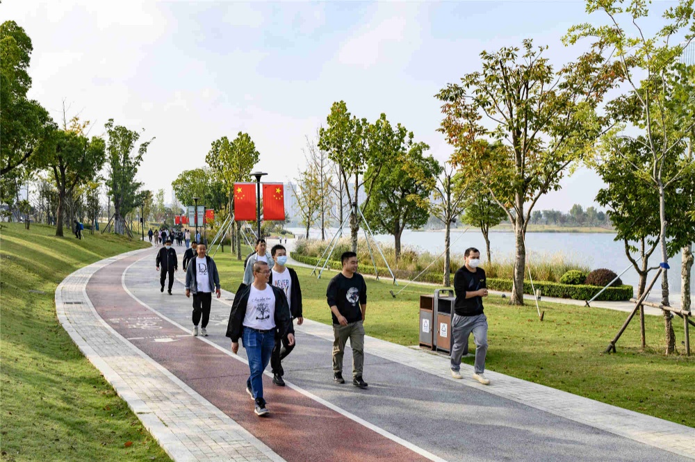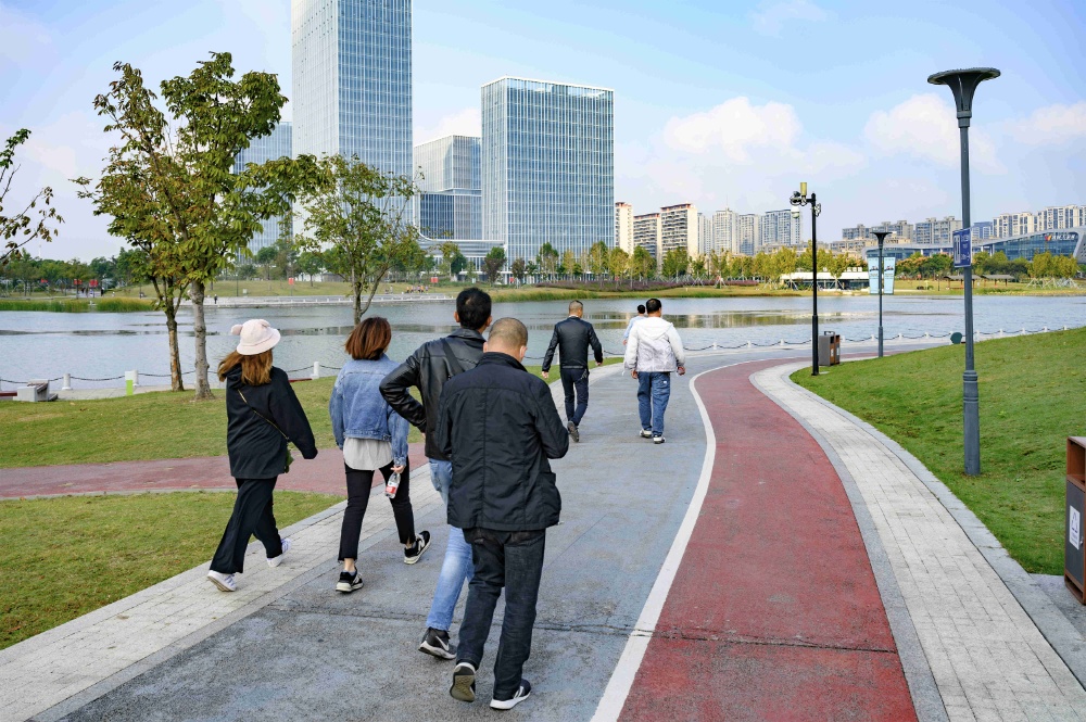 秋風送爽,秋意盎然,聞著秋天的味道、聽著秋天的聲音,我們出發啦!隨著行進口號響起,環湖綠道上頓時熱鬧了起來。一路上,員工們你追我趕向前沖!有勁走的,有小步快速行走的,也有達人一路小跑的,雖然不是比賽,雖非運動員標準動作,但大家盡情體驗著快樂、感受著美景,個個臉上洋溢著興奮與喜悅。行進隊伍一路揮灑的熱情為輕紗薄霧中的秀湖平添了一道獨特而亮麗的動感風景線。